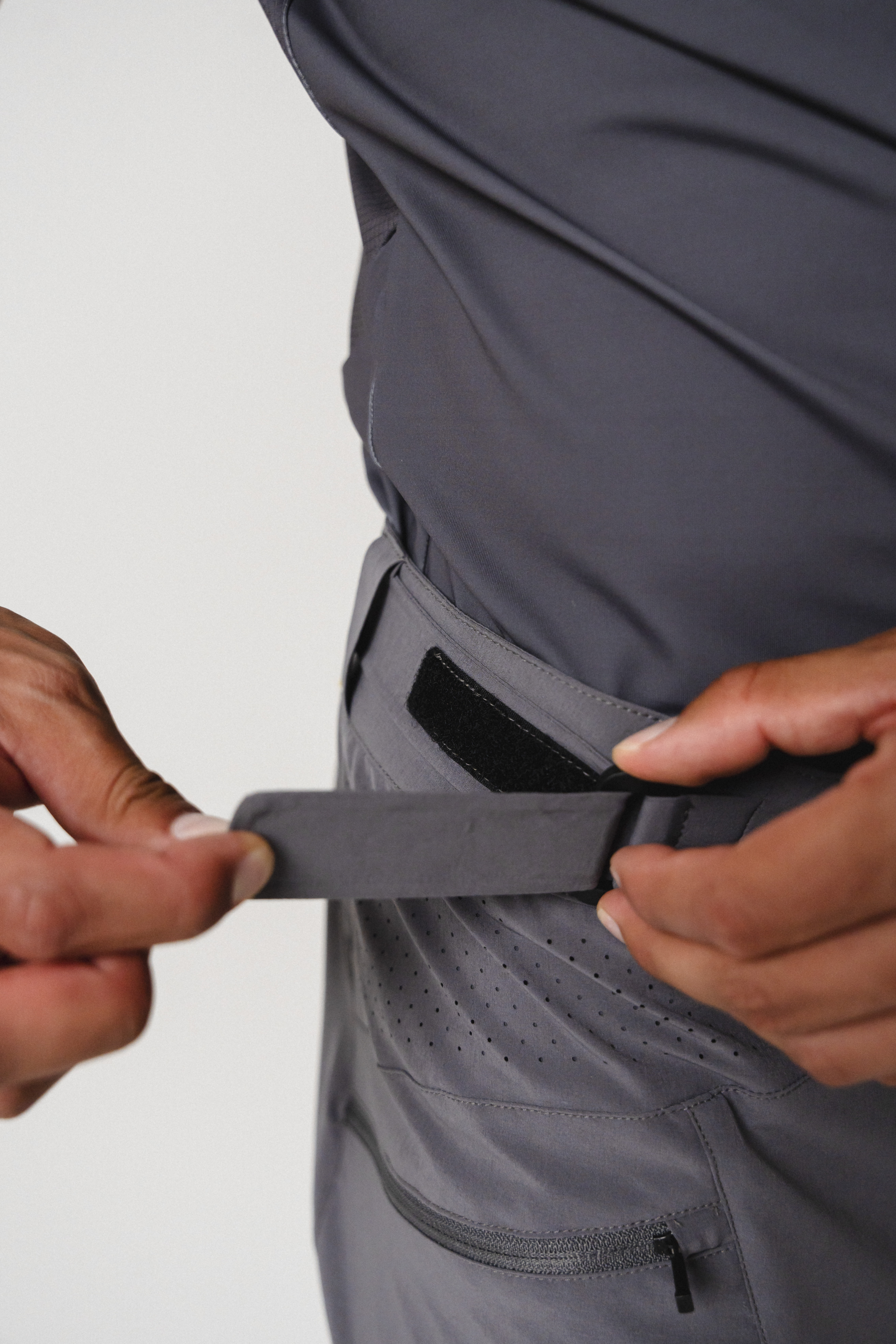 - Weitenregulierbarer Bund mit abnehmbarer Belt-Pocket